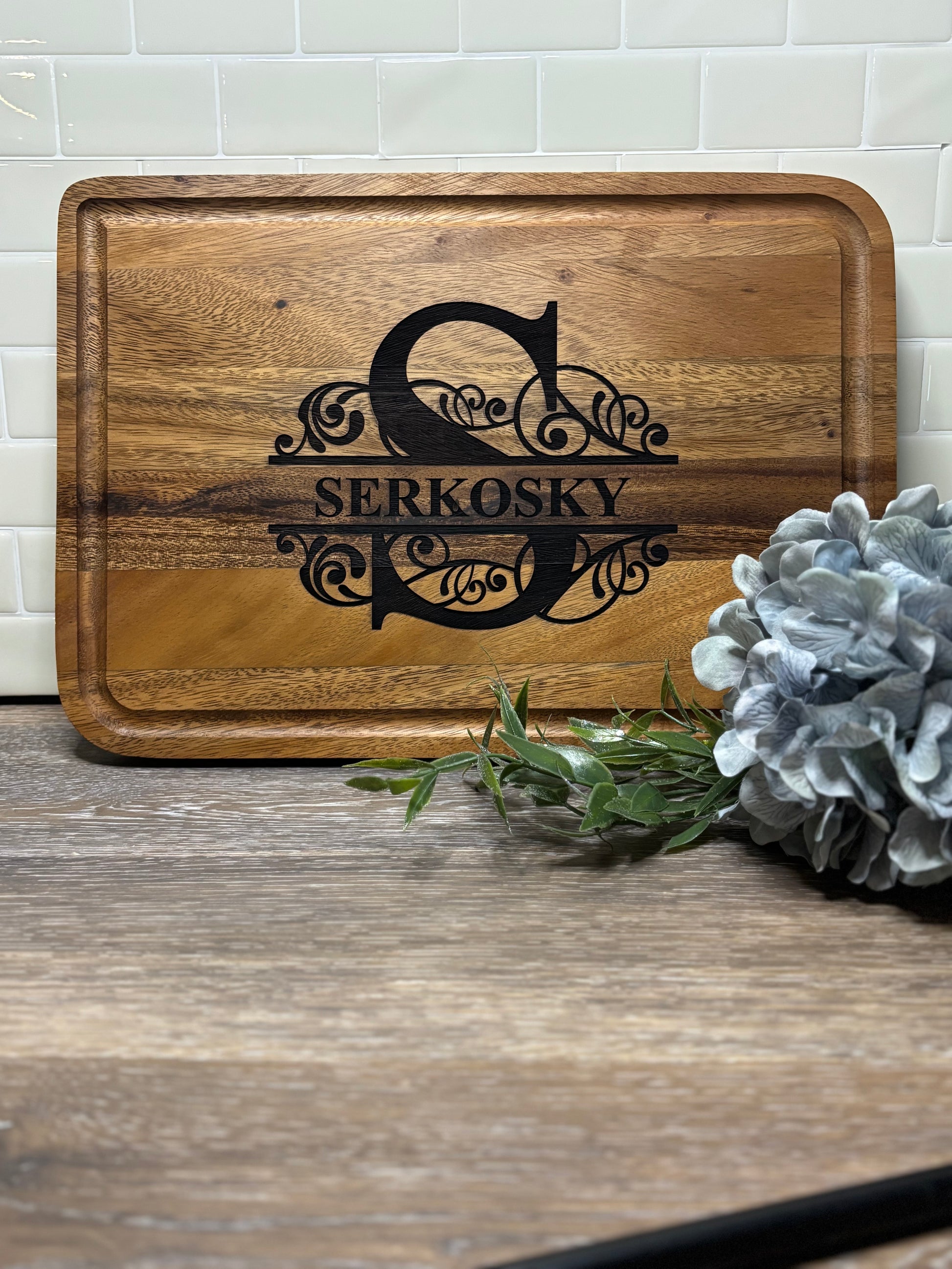 "These cutting boards add personality to your kitchen with your choice of fun sayings, monograms, or logos. Cut and chop with style!"